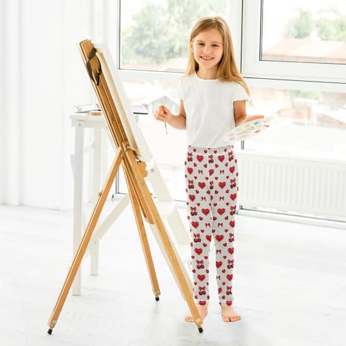 Bow Hearts Cherry Pattern Girls Leggings Soft Comfortable Athletic Leggings Dancing Pants for 4-10 Years 4