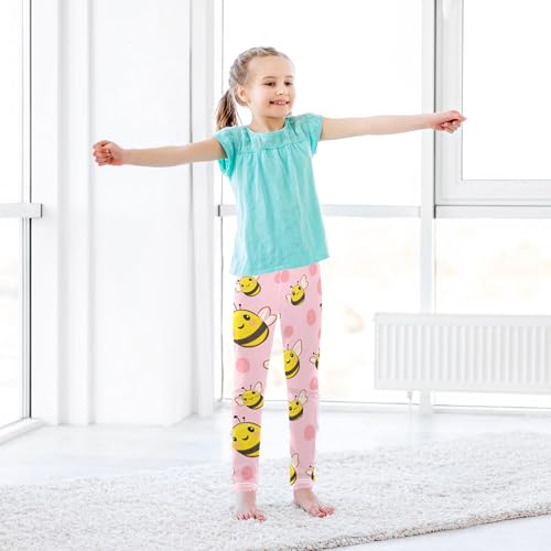 JUNZAN Cartoon Cute Bees Pink Kids Girls Leg Warmers Leggings Stretchy Dance Leggings Yoga & Gym 4T 6