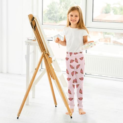 HOT ! Croissants and Pink Bows Pattern Girls Leggings,Workout Leggings for Girls Toddler Athletic Leggings Size for 3-10T