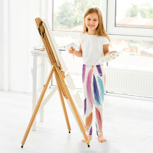 Bolaz Toddler Girls Leggings Printed Yoga Pants Leggings Purple Blue Feather for Kids 7