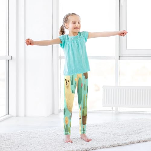 Bolaz Toddler Girls Leggings Printed Yoga Pants Leggings Yellow Alpaca Cactus for Kids 7