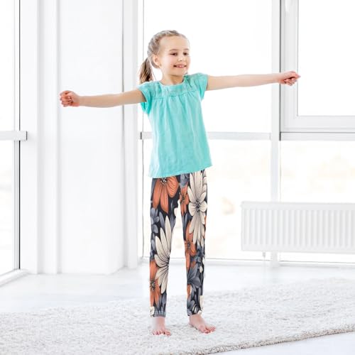 Bolaz Toddler Girls Leggings Printed Yoga Pants Leggings White Orange Flower for Kids 5