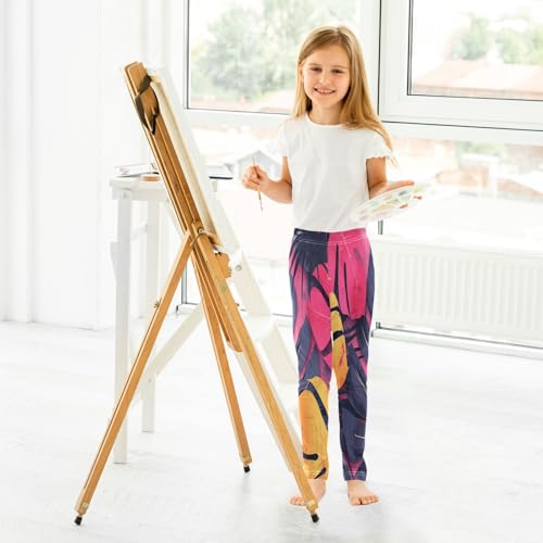 Toddler Girls Leggings Printed Yoga Pants Leggings Yellow Pink Leaf for Kids 5