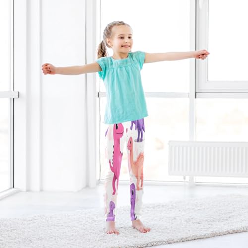 Bolaz Toddler Girls Leggings Printed Yoga Pants Leggings Orange Pink Purple Dinosaurs for Kids 7