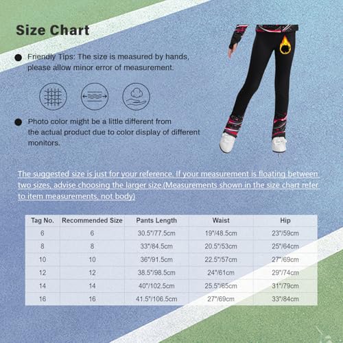 Jugaoge Kids Girls Fleece Figure Skating Pants High Waist Ice Skating Sports Leggings Bootcut Yoga Tights 7