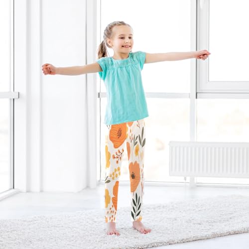 Bolaz Toddler Girls Leggings Printed Yoga Pants Leggings Orange Yellow Flower for Kids 7