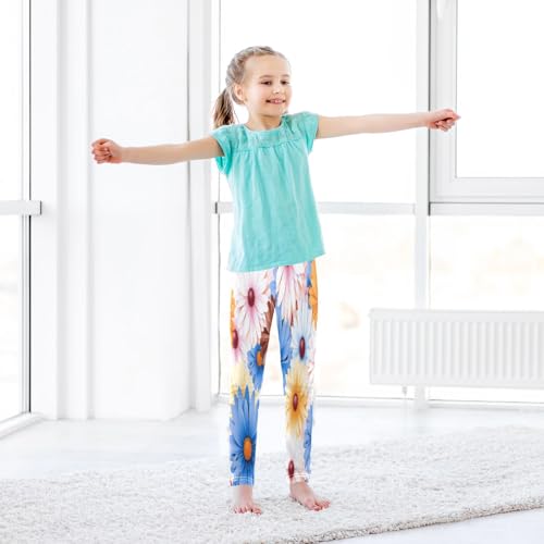 Bolaz Toddler Girls Leggings Printed Yoga Pants Leggings Blue Yellow Daisy for Kids 7