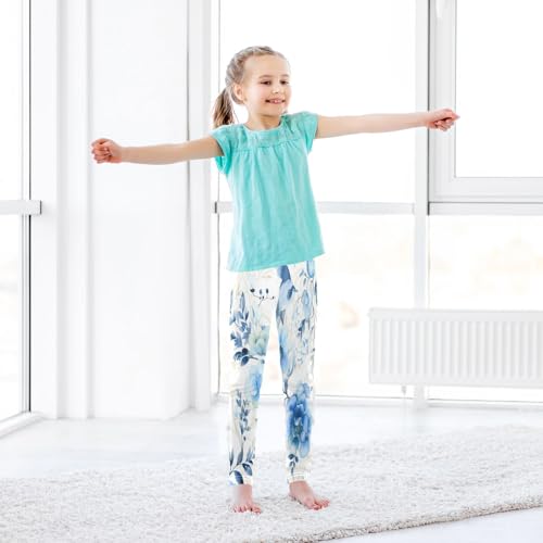 Bolaz Toddler Girls Leggings Printed Yoga Pants Leggings Blue Painting Flower for Kids 7