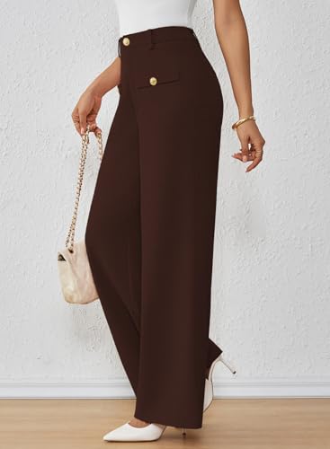 • Features: Solid color, high waist, straight leg, loose, wide leg pants, front fake pockets with buttons decoration, back utility pockets and textured fabric. This wide leg dress pants women is perfect for both business and casual.