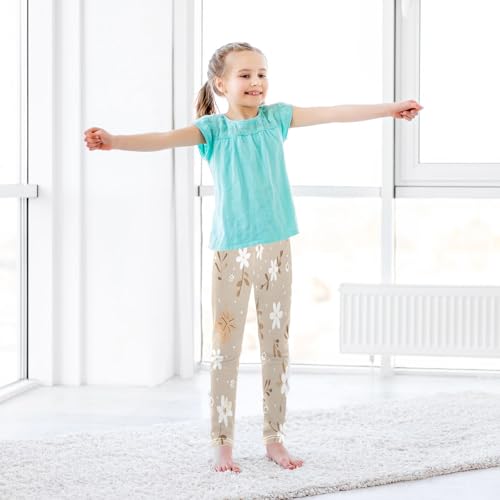 Bolaz Toddler Girls Leggings Printed Yoga Pants Leggings White Flower Gold Leave for Kids 7