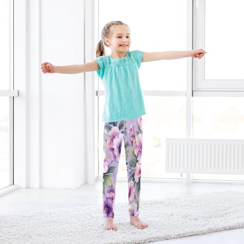Bolaz Toddler Girls Leggings Printed Yoga Pants Leggings Purple Pink Flower for Kids 7