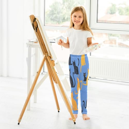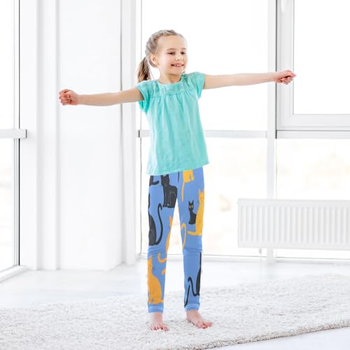 Toddler Girls Leggings Printed Yoga Pants Leggings Blue Background Cats for Kids 6
