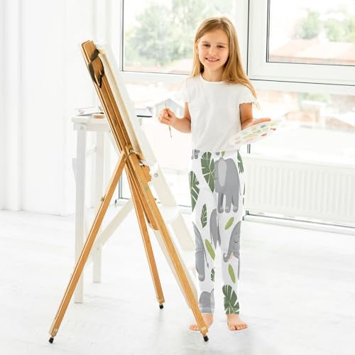 Bolaz Toddler Girls Leggings Printed Yoga Pants Leggings Leave Grey Elephant for Kids 7