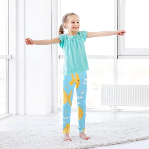Bolaz Toddler Girls Leggings Printed Yoga Pants Leggings Yellow Fish White Swave for Kids 6