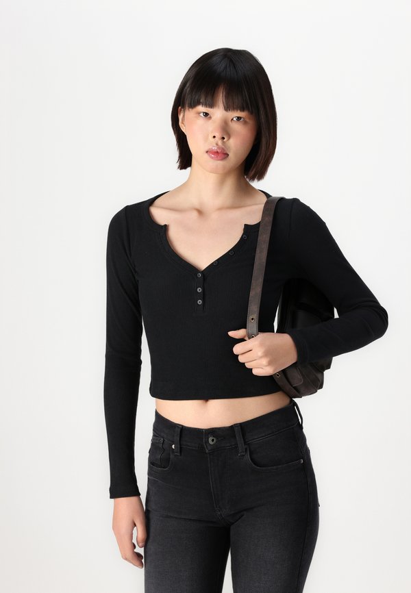 HOT ! Cozy Ribbed Seamless Fabric Icon Henley - Long sleeved top