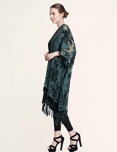 HOT ! Women's Coverups Burnout Velvet Cardigan Casual Outfit Long Cover Up Kimono with Tassel