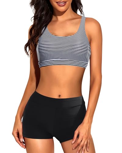 • Swim shorts and top for women: This sports bra bikini top comes with removeable padded bras paired with boyshorts. Suitable for women, teens, girls, juniors, and moms.