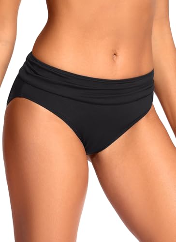 • Match: The retro ruched front and back of the mid waist fold over bikini bottom , decorate your waistline and show off the curves of your body, makes you look slimmer, can be easily matched with any swim tops.