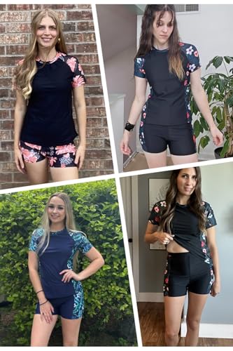 Daci Women's 2 Piece Rash Guard UPF 50+ Short Sleeve Swim Shirt with Shorts Swimsuit with Pockets and Built-in Bra 1