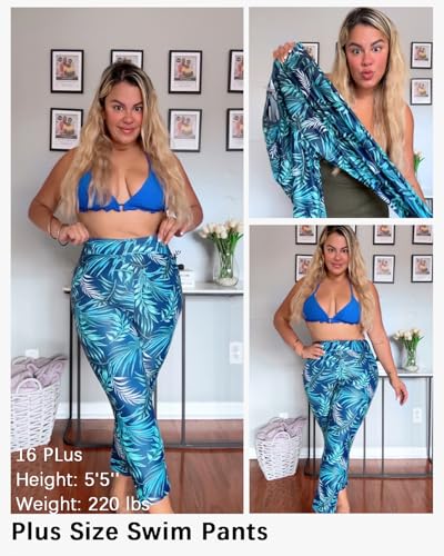 Holipick Plus Size Swim Pants for Women Swim Capris High Waisted Swim Leggings UPF 50+ Long Swim Shorts 6