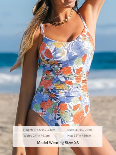 More information about CUPSHE Women's One Piece Swimsuit V Neck Tummy Control Bathing Suit Crisscross Back Self Tie Ruched Swimwear