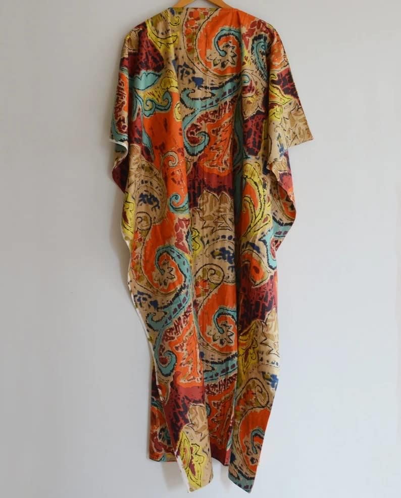 Cotton Printed Handmade Kaftan Dress, Indian Hand Block Print Sleepwear Maxi Dress Kimono Robe, Women Beach Cover up Women Night Dress Multi 4