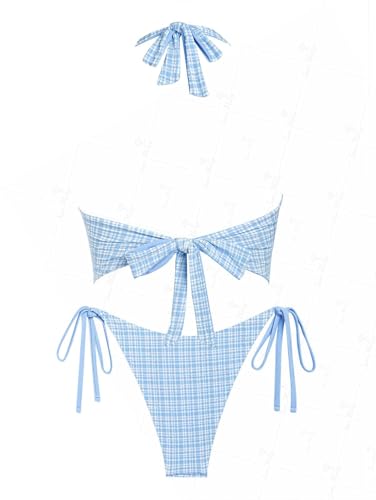 HOT ! seamoly Gingham Bowknot Decor Halter Tied Chic Tankini Set