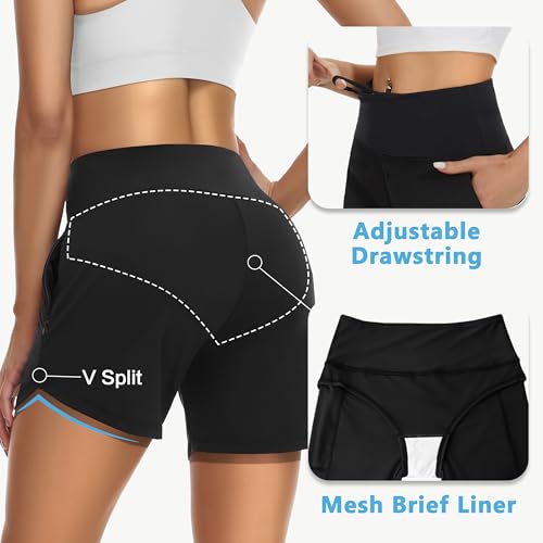 Womens' 5" Swim Shorts Tummy Control Quick Dry Swimsuit Bottom High Waist Loose Fitting with Zipper Pocket Liner UPF50+ 5