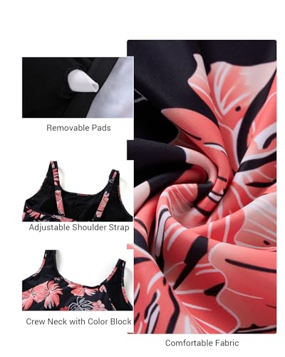 • Tummy Control: The plus-size color-block swimsuit features a built-in removable padded bra for support, while ultra-high-waist shorts smooth and shape your midsection for a flattering silhouette.