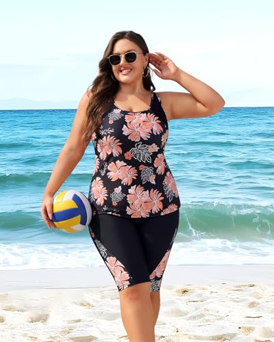 Daci Womens Plus Size Tankini Swimsuits - Tummy Control Two Piece Bathing Suits with Knee Length Shorts 2025 2
