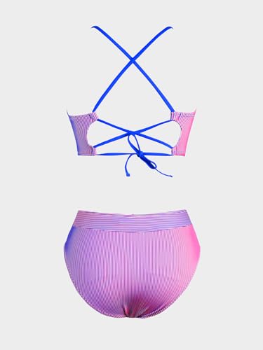 More information about CUPSHE Women's Bikini Sets Two Piece Swimsuit High Waisted Striped V Neck Swimwear Back Tie