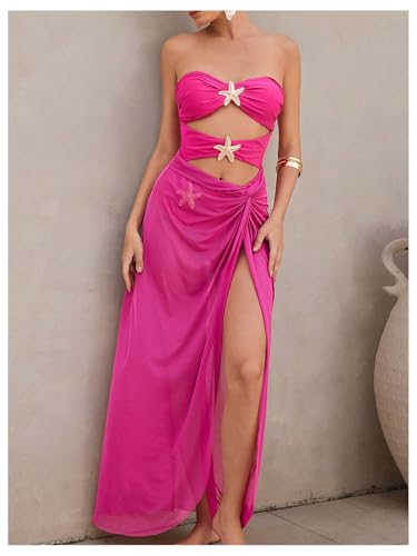 WDIRARA Women's Metallic Starfish Cut Out Strapless Bandeau Swimsuit with Cover Up Skirt 2 Piece Bathing Suit 4