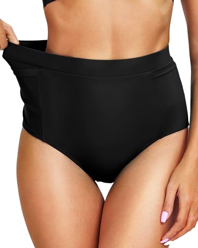 • High waist swim bottoms: These black high waist bikini bottom is made of elastic, comfortable and durable fabric, which is easy to mix and match with any bikini tops or tankini tops.