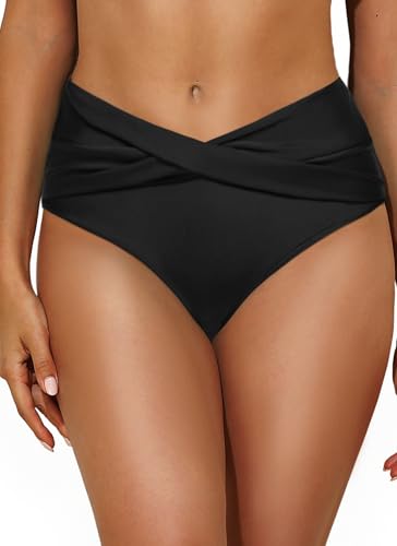 More information about Women Full Coverage Bikini Bottom - V Cut Bathing Suit Bottoms Mid Waist Twist Front Swimsuit Bottom Swimwear 2025