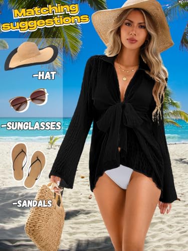 More information about Women's Tie Front Swimsuit Cover Up, Bathing Suit Coverup Long Sleeve Chiffon Blouse, Beach Pool Sheer Shirt Vacation