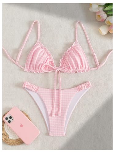 GORGLITTER Women's 2 Piece Triangle Bikini Sets High Waist Gingham Checkered Thong High Cut Swimsuits Bathing Suits 2