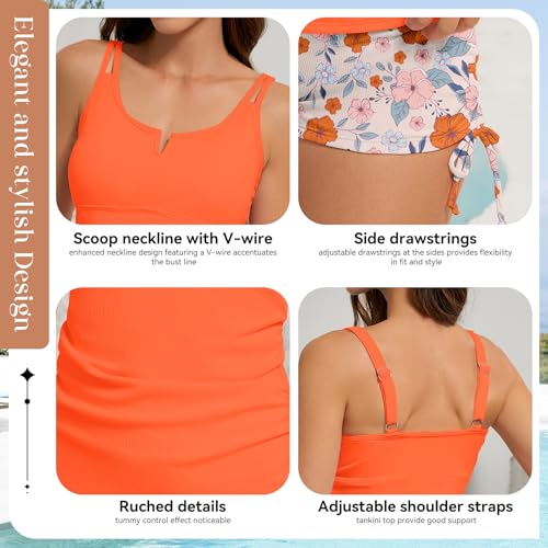 • DESIGN - Athletic tankini swimsuits for women design with retro floral printed, cute round neckline, and slimming silhouette. The high waistline and tummy control design can not only accentuate your curve, but also optimize your body proportions visually, make you more attractive, elegant and stylish.