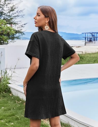 AI'MAGE Women's Cover Up Short Sleeve Bathing Suit Cover Ups V Neck Beach Coverup Dress with Pockets 2