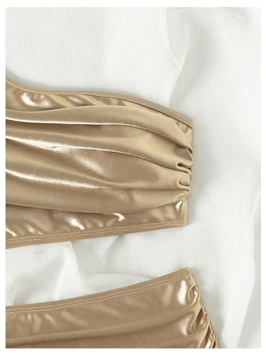 SweatyRocks Women's One Shoulder Wireless Bikini Set Ruched High Rise 2 Piece Swimsuit Beachwear 3