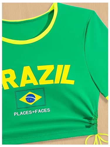 Women's Two Piece Swimsuit Letter and Brazil Flag Short Sleeve Tee Crop Top and Cut Out Bikini Bottom Set 4