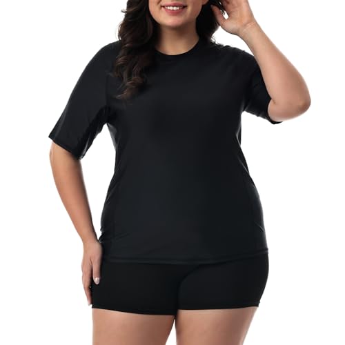 HODOSPORTS Women's Plus Size Rash Guard UPF 50+ Swim Shirt Sun Protection Swimsuit Top Short Sleeve 1X-6X 1