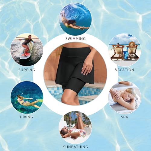 • 【High Waisted Tummy Control Skirt Skorts】 High waisted tummy control swim bottoms with wide waistband, hide your belly perfectly, comfortable and flattering, making you more confident.
