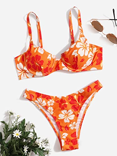 WDIRARA Women's Floral Print Underwire Bikini Swimsuit 2 Piece Bathing Suits Swimwear 2