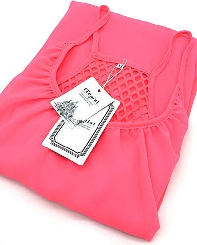 • Sleeveless spaghetti straps, Short asymmetrical hemline, Back hollow out mesh design