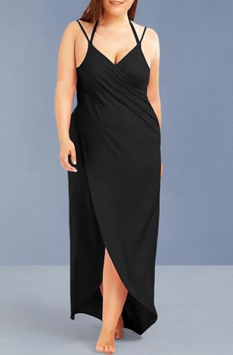 Plus Size Spaghetti Strap Cover Up Beach Backless Wrap Long Dress 4