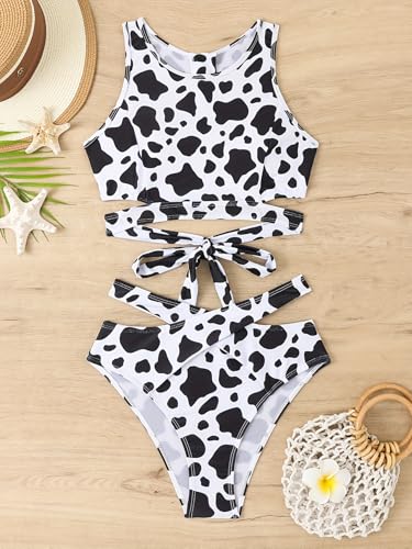 HOT ! Women Swimsuit Bikini Set Floral Scoop Neck High Waisted Two Piece Bathing Suit