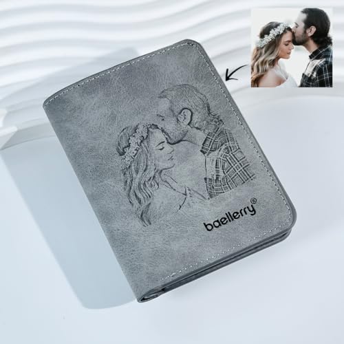 HOT ! Personalized PU Leather Wallet for Men, Custom with Picture - Ideal Gift for Dad, Boyfriend, Husband (grey - with photo)