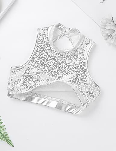 Girls Sequins Dance Outfit 2 Piece Cutout Back Crop Top with Booty Shorts for Gymnastics/Dance/Workout 6