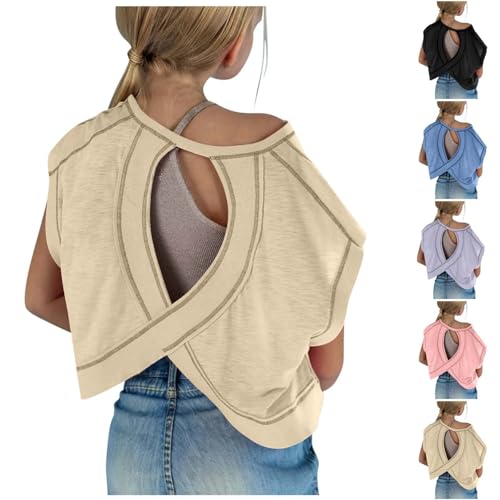 Little Girls Open Back Workout Top Teens Oversized Y2k Running Crop Tee Kids Backless Athletic Gym Yoga Short Sleeve T Shirts 6
