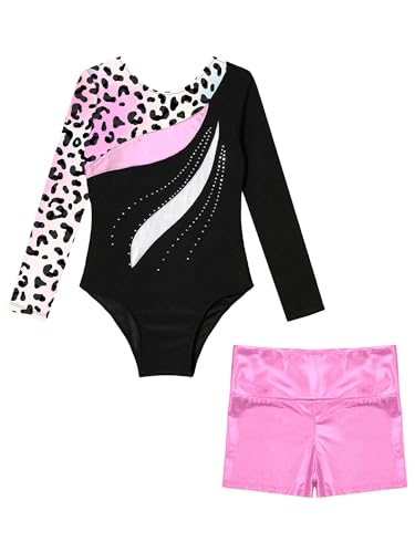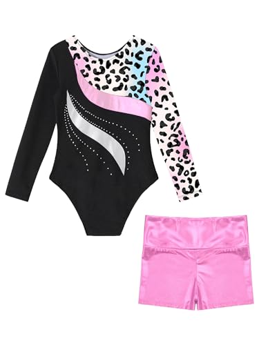 Kids Girls Long Sleeve Leotards with Shorts Sets 2 Pieces Gymnastics Dance Outfits Dancewear Tracksuit 6